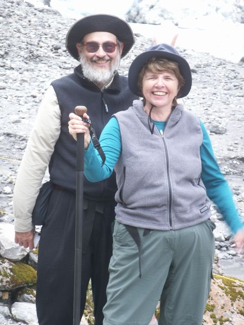 Leaving Hokitika, we stopped at Fox Glacier. Walking up to the glacier. Photographing a kia (alpine parrot) in the parking lot there. Knights Point. More beach, multiple beachcombers, and Don on a rock.