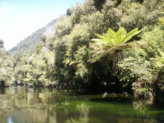 A highlight of the trip was riding a jetboat up Waiatoto River with Waiatoto River Safaris. The ride was fun and the scenery spectacular. We stopped and took pictures at the upstream point where the river was not navigatable even for a boat with 4 inch draft. On the same ride, dramatic differences in environment on one of the smaller streams where it fed into the ocean. Lunch guest on a fishing pier at Jackson Bay after the jetboat ride.