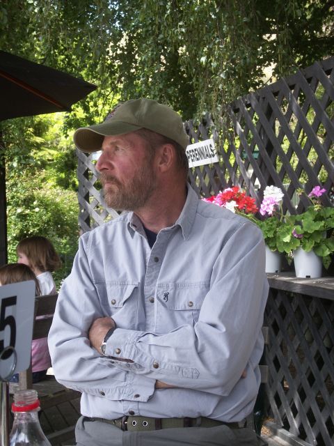 We stopped at the original BUNGY jump and Suzanne prepared to join in. Roadside fruit stand for cherries and strawberries. Don Carr, hearing again the story of how a gold miner assures that nobody will take his gold at a lunch stop along the road to Twizel. Fields of lupine everywhere, making the photographer really happy. We picked up really fresh salmon at a salmon farm for one evening meal. One picture with the orange shirt.