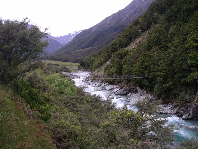 On the way to Wanaka, Suzanne on suspension bridge on walk to Blue Pools and her biggest wildlife photo while waiting for Rod to climb down to the pools and back. Scenery along the way, with photographer or subject. A typical landscape , often difficult to capture from a moving vehicle.