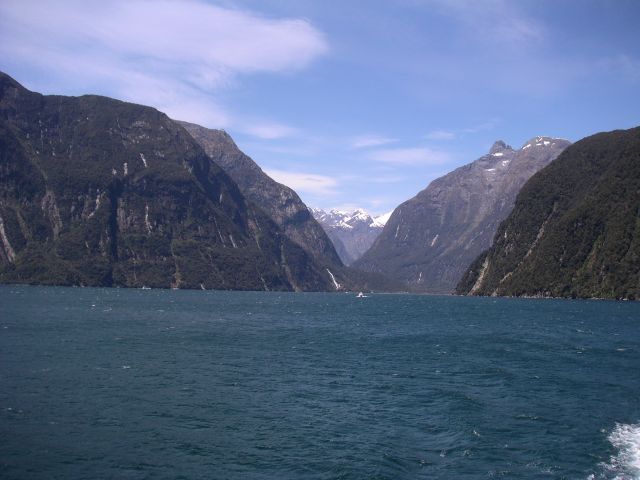 From lodging in Arrowtown, most of us took an all day commercial bus tour to Milford Sound. The bus let us out for a short break at Te Anau, so Suzanne immediately took off for the end of Lake Te Anau for a photo. Mirror Lake. There were LOTS of people taking this route on many coaches, with multiple photo stops.