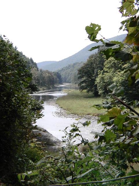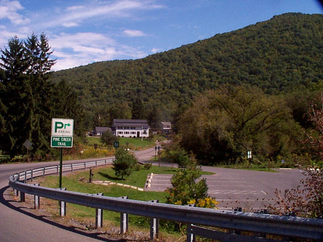 The canoe access park at Blackwell, seen from the bridge over Pine Creek.