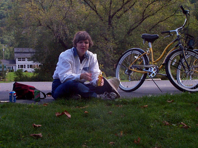 Suzanne riding in the sprawling metropolis of Blackwell, PA.
