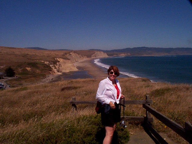 Here Suzanne is looking over Drakes Beach at Point Reyes.