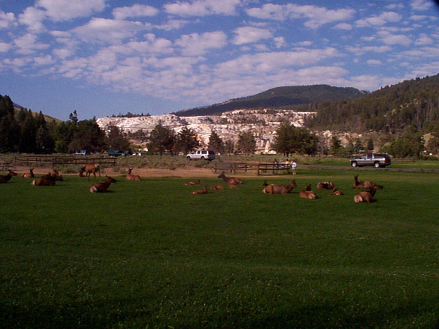 This is the front yard of the visitor center in Mammoth Hot Springs.